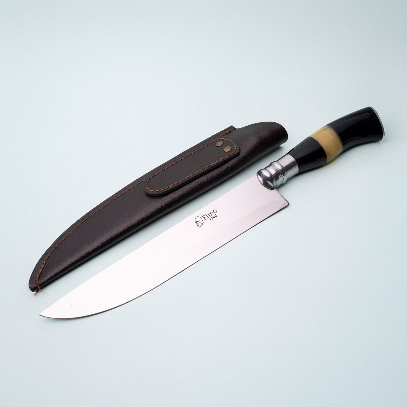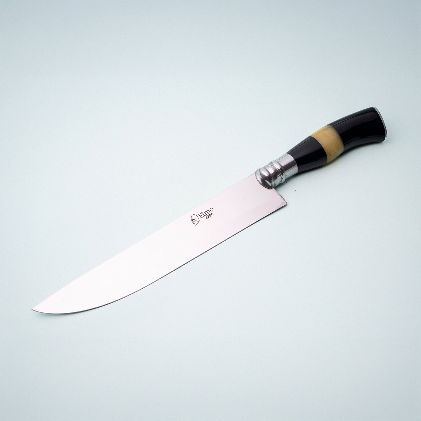 A Faca Elmo AL com Cabo em Chifre e Osso de 7 polegadas, é uma escolha acessível e versátil para cortar uma variedade de alimentos, especialmente carnes. Com uma lâmina de 2mm de espessura feita de aço inoxidável 420C, oferece durabilidade e eficiência no corte.