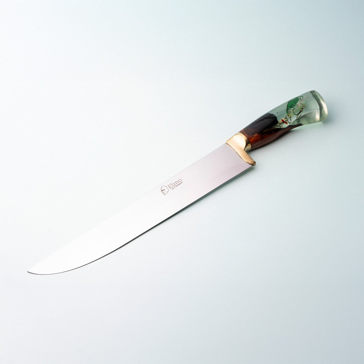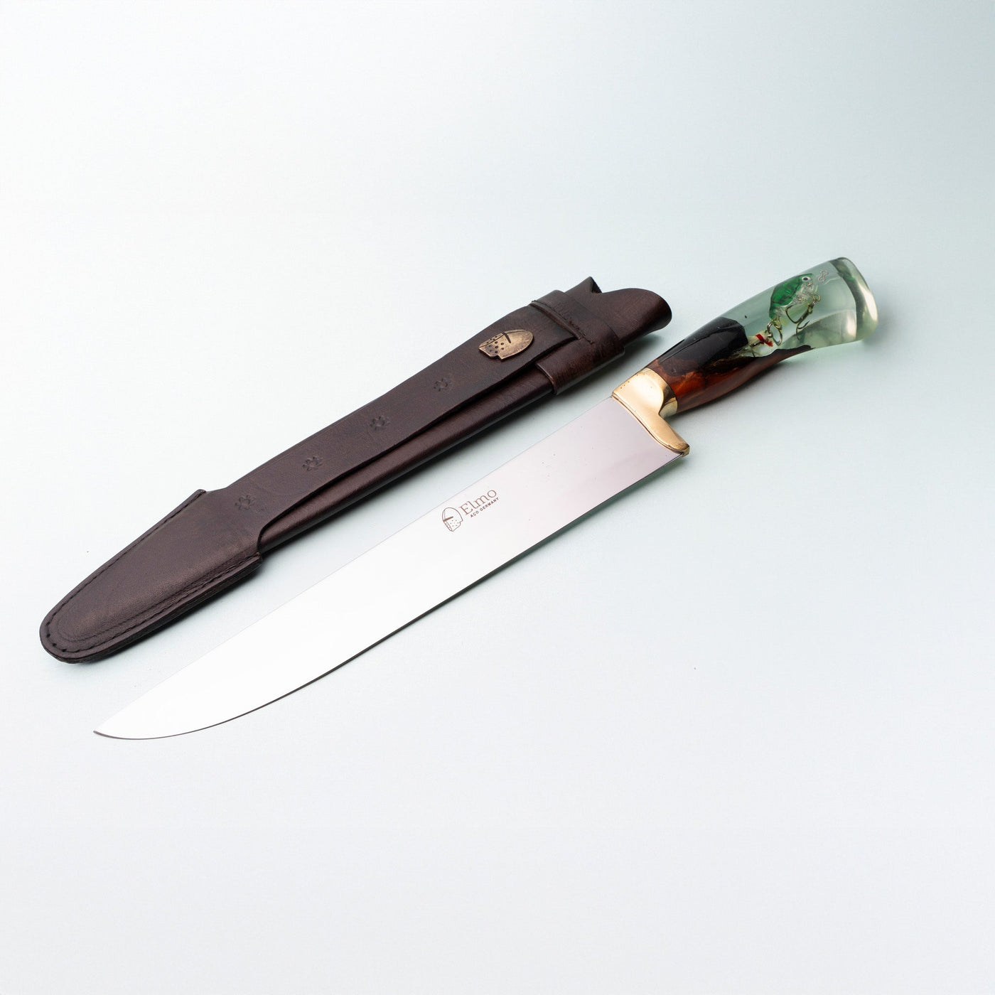 A Faca Churrasco Cabo Híbrido Peixe em 8 Polegadas é uma peça de qualidade excepcional, projetada para os amantes da pesca. Fabricada com aço inox alemão de alta durabilidade e precisão de corte, esta faca possui uma lâmina sólida de 3mm de espessura que garante cortes precisos em qualquer carne. Seu cabo feito em resina importada, com isca de peixe, proporciona um design perfeito para quem ama uma boa pescaria, enquanto a bainha em couro legítimo e guarda em latão garantem a proteção da faca e adicionam um toque de rusticidade ao conjunto. É a escolha ideal para os amantes do churrasco que valorizam a qualidade e a estética em suas ferramentas de churrasco.