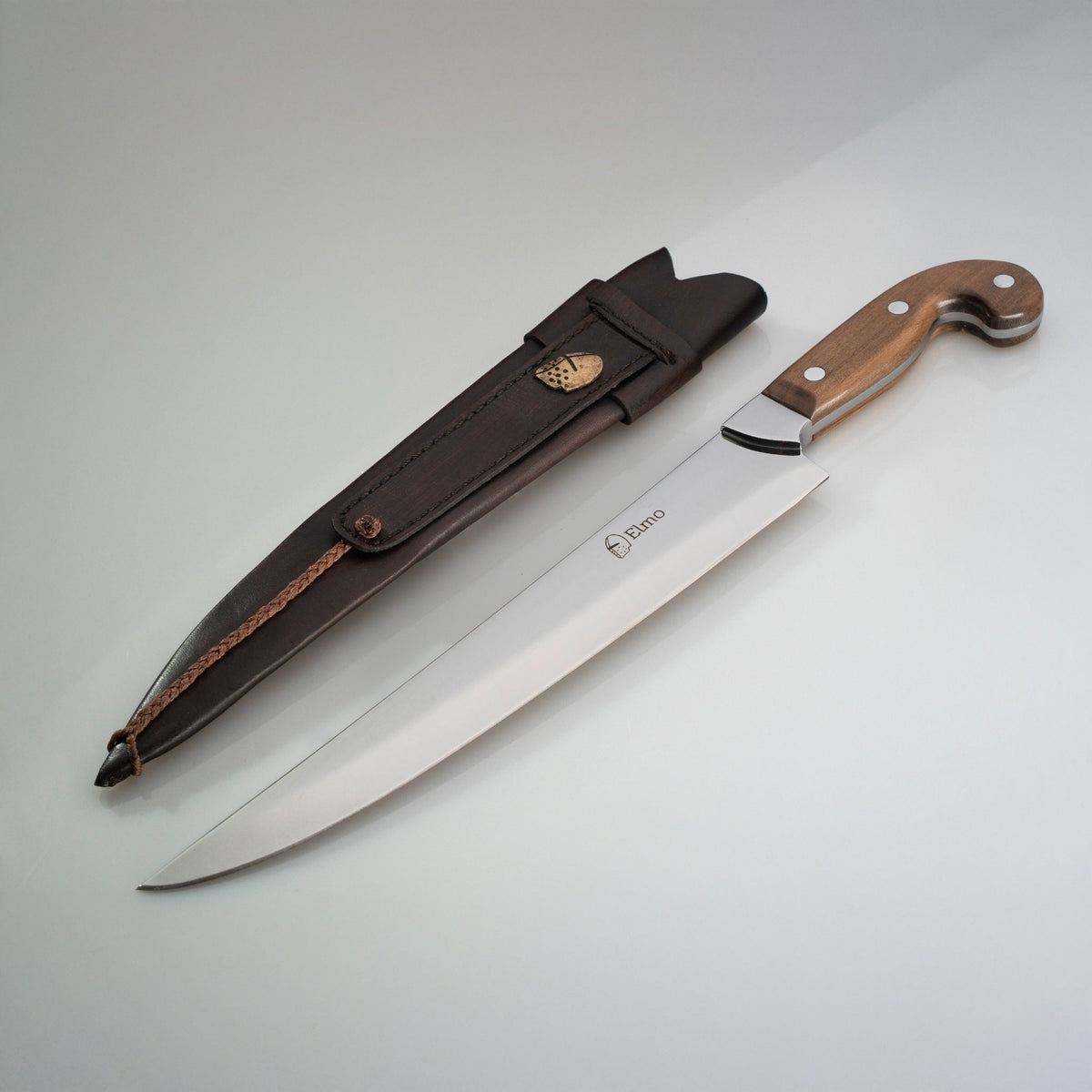 A Faca Sorocaba em 8 Polegadas é uma peça de artesanato refinado e funcionalidade excepcional. Sua lâmina em aço inoxidável de 3mm de espessura é robusta e durável, perfeita para uma ampla gama de tarefas na cozinha e ao ar livre. O cabo de madeira nobre não apenas adiciona um toque de elegância ao design, mas também oferece uma empunhadura confortável e segura. A bainha em couro legítimo complementa a faca, proporcionando proteção à lâmina e facilitando seu transporte, tornando-a uma escolha premium para chefs e entusiastas de atividades ao ar livre que valorizam a qualidade, a estética e a funcionalidade.