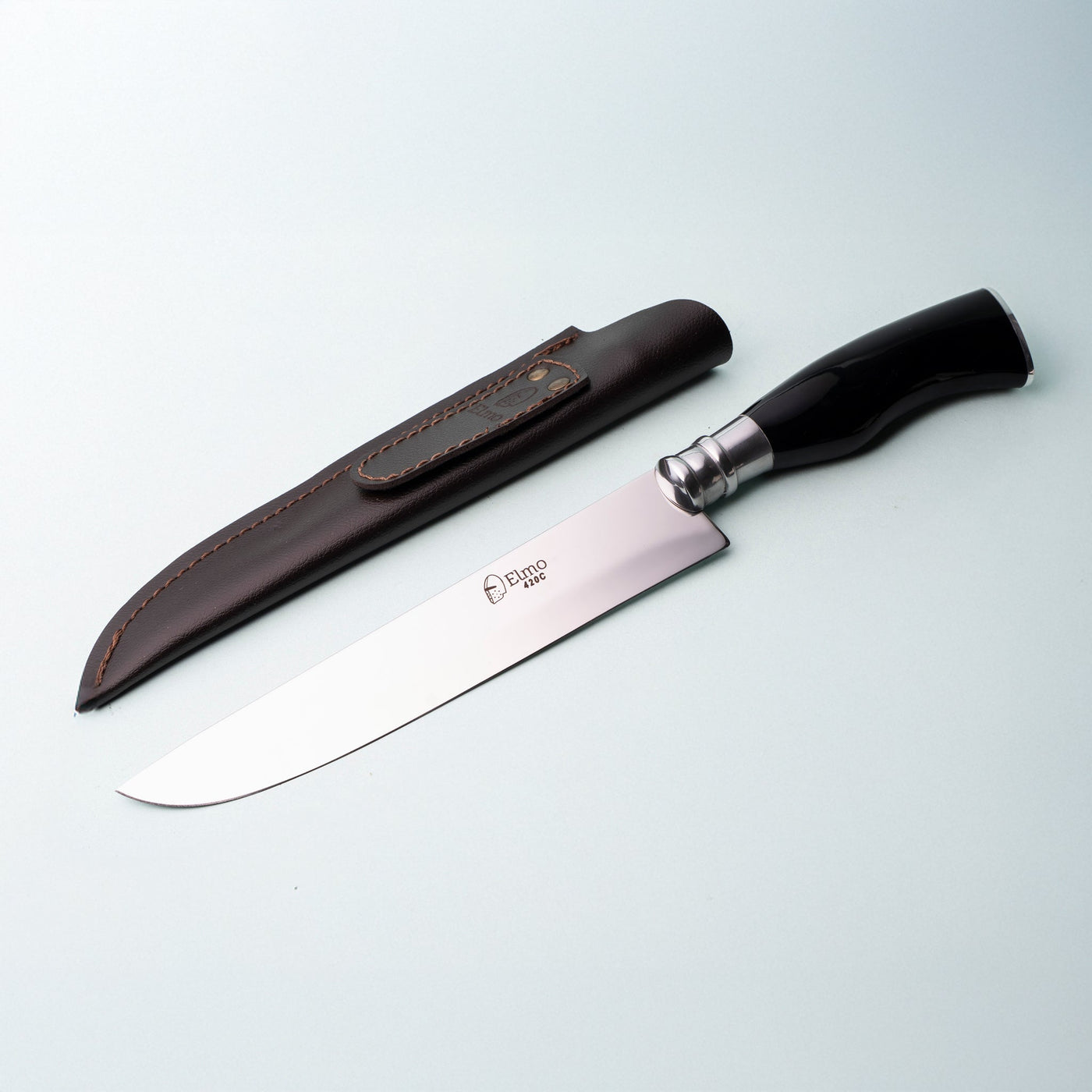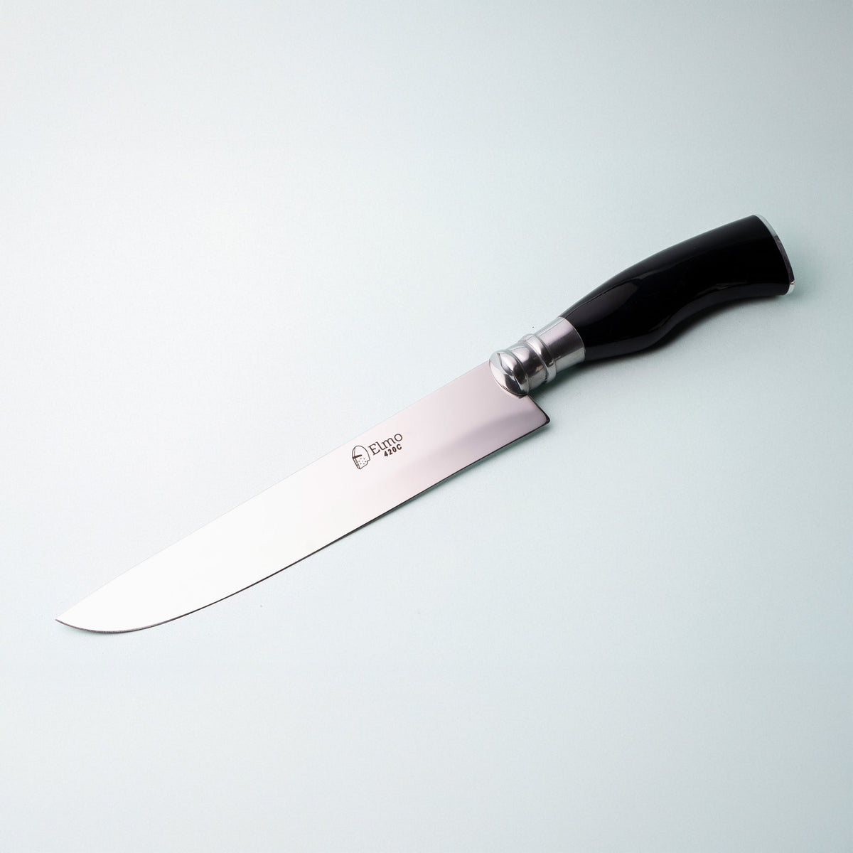 A Faca AL Chifre em 7 polegadas da Elmo é uma escolha acessível e versátil para cortar uma variedade de alimentos, especialmente carnes. Com uma lâmina de 2mm de espessura feita de aço inoxidável 420C, oferece durabilidade e eficiência no corte.