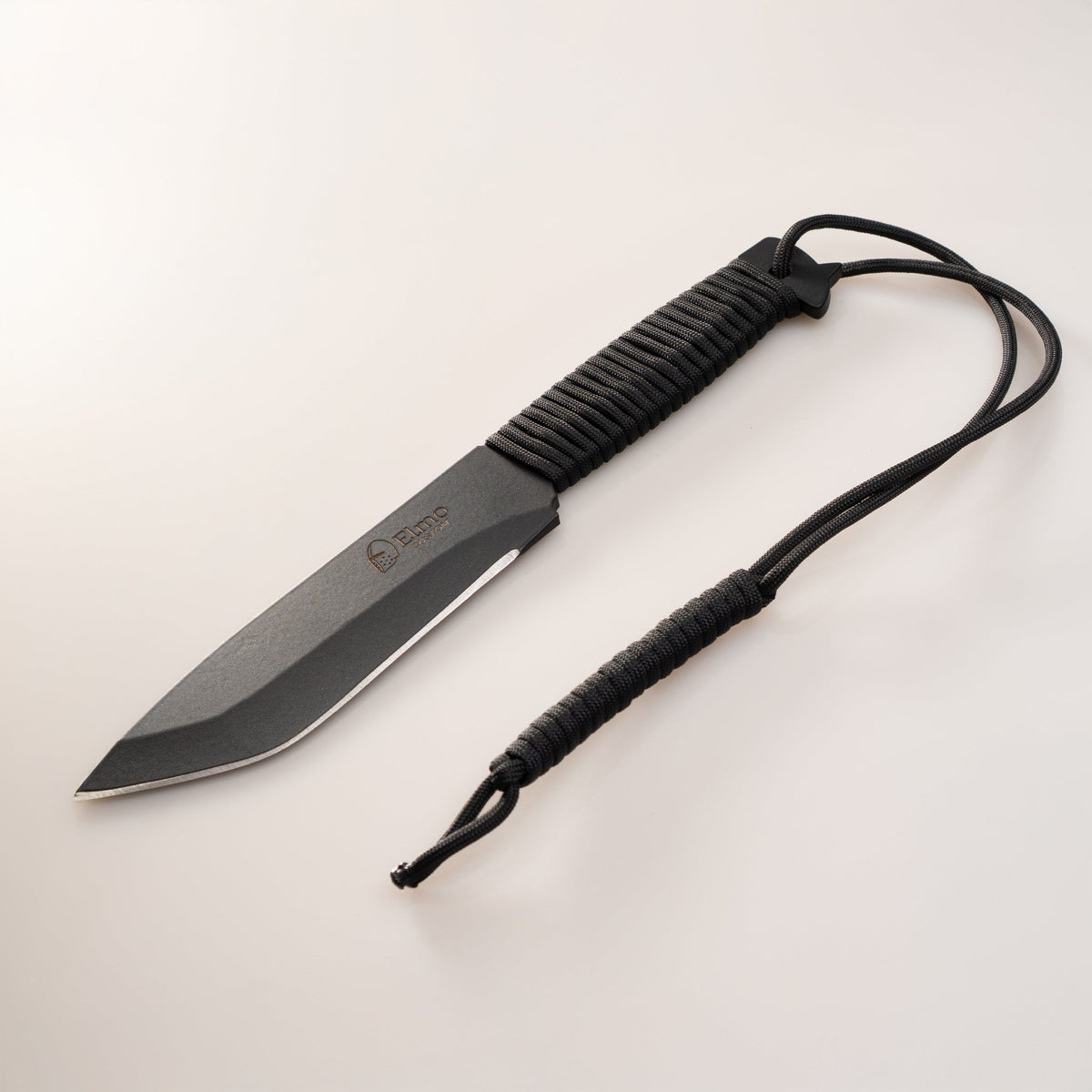 A faca é feita em aço carbono 1070, com pintura epóxi para estética e proteção. Acompanha paracord na cor preta. Lâmina feita em 4,75mm de espessura. Tamanho total da peça é de 27cm de comprimento.